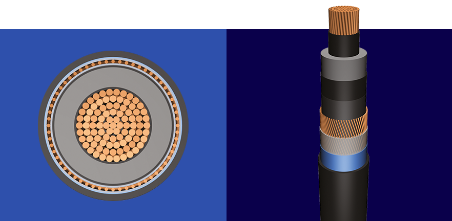 These are cables with low dielectric losses used in energynetworks with sudden load changes. Laid in residential orindustrial areas, underground or in ducts. If the cable getswater inside due to the mechanical demages, swellable tapesprevent the movement of the water inside the cable.